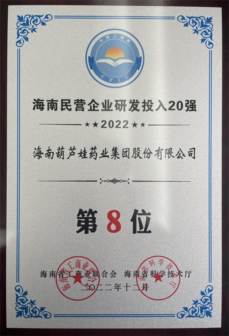 12月23日,2022海南民营企业50强和研发投入20强发布会在海口举行。会上发布了“2022海南民营企业50强”“2022海南民营企业研发投入20强”榜单和分析报告。z6mg·人生就是博药业再次荣登两榜,在海南民营企业50强榜单中位列第25位,较去年上升8位,这也是公司连续三年登榜;在海南民营企业研发投入20强中位列第8位,较去年上升7位。